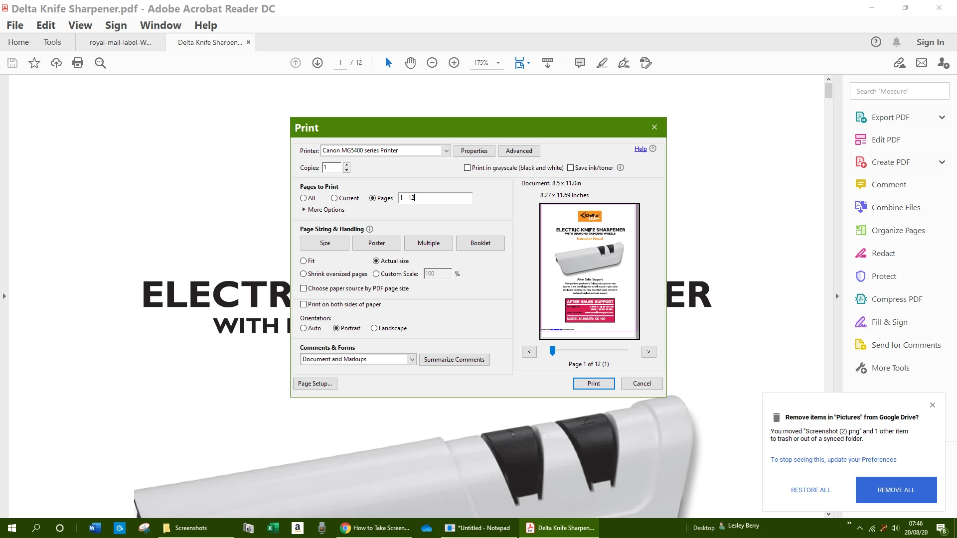 Can't change numbers of selected pages to print
