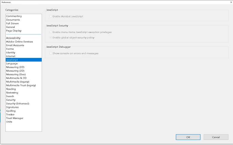 CAN'T ENABLE JAVASCRIPT, OPTION GREYED OUT
