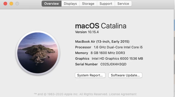 I'm using a Mac running Catalina version 10.15.4.