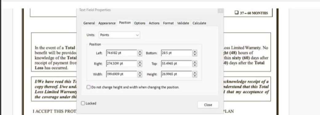 Can't set left and bottom of text field to 0 pt