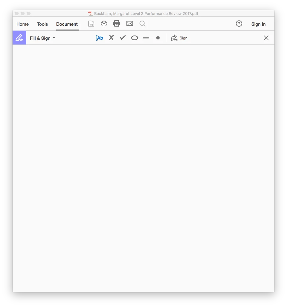 I am using Adobe Acrobat Reader version 2017.0009.20044 on a Mac using sierra version 10.12.4. A few weeks ago I could sign and put text onto pdf's ( using fill and sign tool), now all I can do is highlight. When I try to use the fill and sign tool I get a tool bar on the top of the window as usual but the rest of the window that normal shows the document is blank. I have uninstalled and re-installed ( from a new download) adobe but the problem remains. please help.
