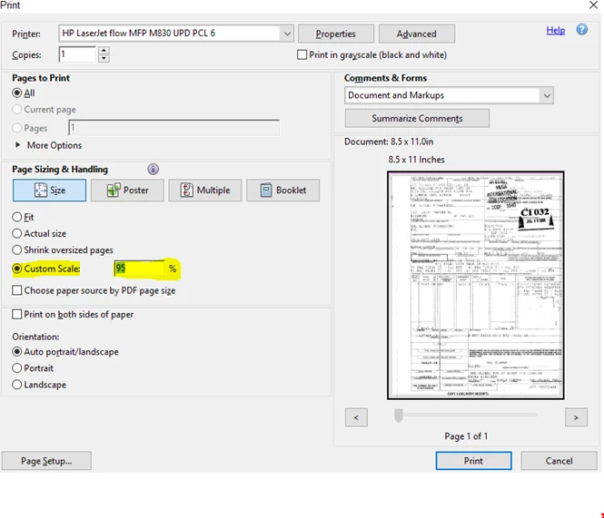 Can we put custom scale to 95% by default in adobe reader?