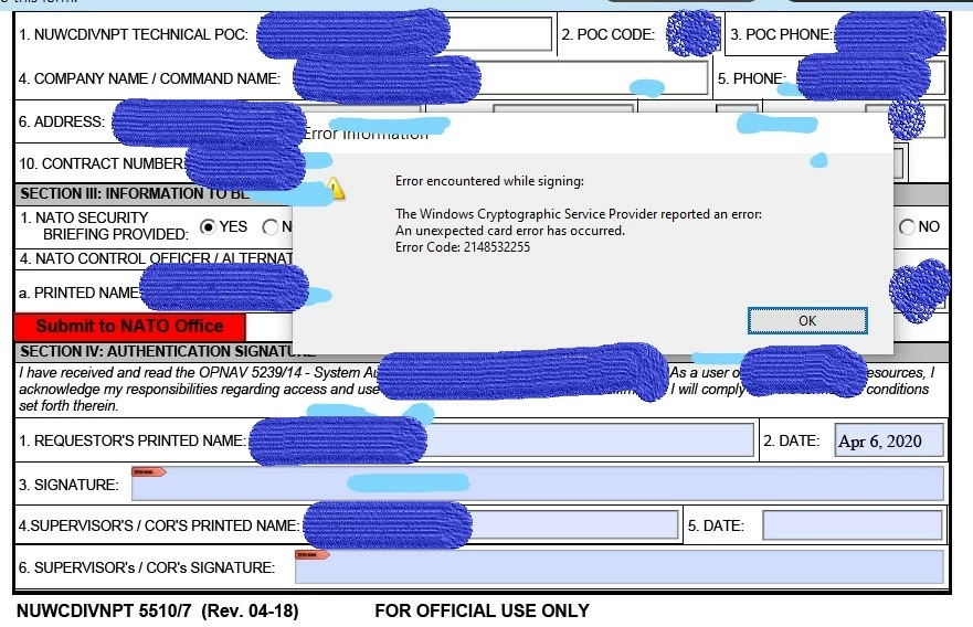 Cant sign PDF with DoD CAC