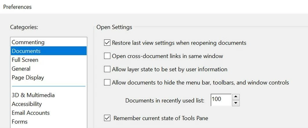 I would like to find out how I can retain the settings under Preferences after I have applied the changes. I am using Adobe Acrobat Reader DC version 2019.008.20071. However, I noticed that after I have made the changes it was not retained when I closed and open back the PDF files. I had saved the Preferences settings as below: