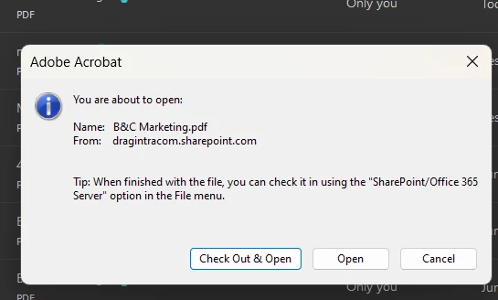 Check out documents pop up question