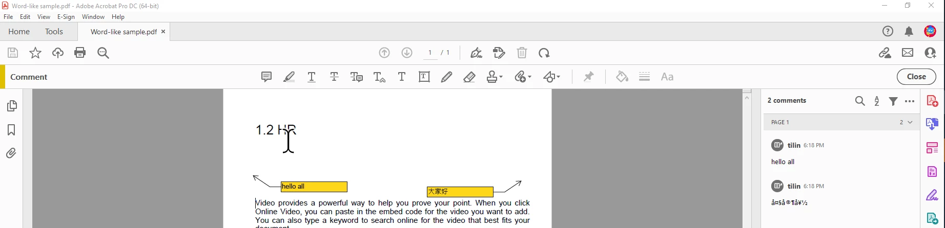 Our firm always with some docs handled by Nitro Pro. When people have ever added Chinese comments in the call out of Nitro Pro, it will display as garbled in Acrobat Reader. Hope this could be solved?