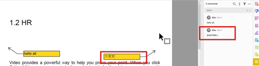 Our firm always with some docs handled by Nitro Pro. When people have ever added Chinese comments in the call out of Nitro Pro, it will display as garbled in Acrobat Reader. Hope this can be solved?