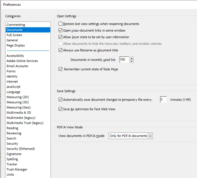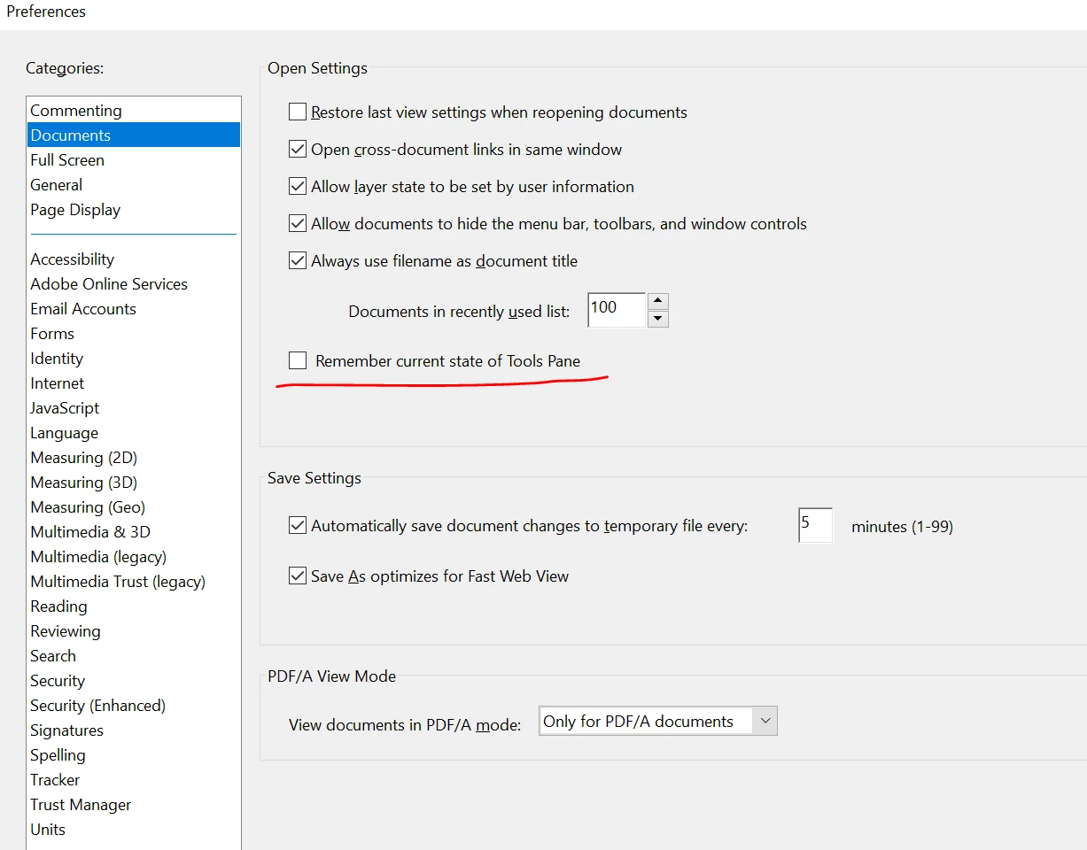 Additionally, is it possible to open PDF documents with the panes closed by default?