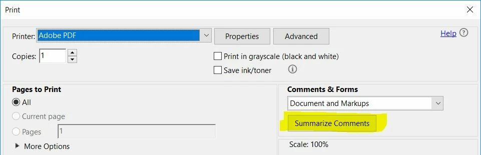 For more information, you may refer to Print comments | Adobe Acrobat, Reader