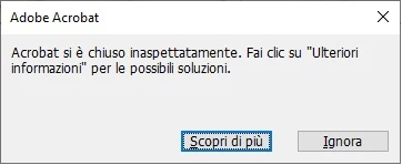 Good evening, I wanted to point out that I have a problem with Adobe Reader version 2023.006.20380 in that suddenly when I open PDF files randomly during the day the program crashes and restarts with the file open. The problem also occurred on my previous PC with Windows 10 Pro (I now have a PC with Windows 11). I tried to follow all the instructions on the Adobe website https://helpx.adobe.com/it/acrobat/kb/acrobat-dc-crashes-on-windows-os.html.