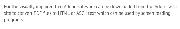 A variety of websites I've recently visited suggest that Adobe offers free software which will convert PDFs to html so that they can be used with screen reader technology for the visually impaired. They don't specify the name of that software. I'm guessing it might be Adobe Reader, but I can't see any way of doing this task with it. Can anyone enlighten me?