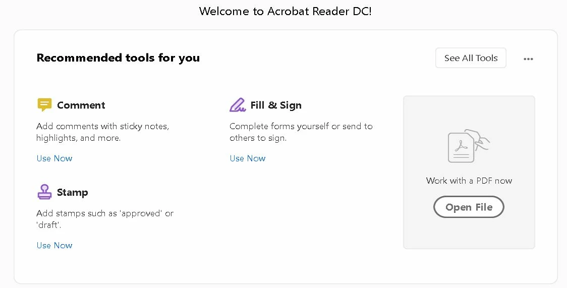 Disable Welcome to Acrobat Reader DC 2020 and Recommended tools for you