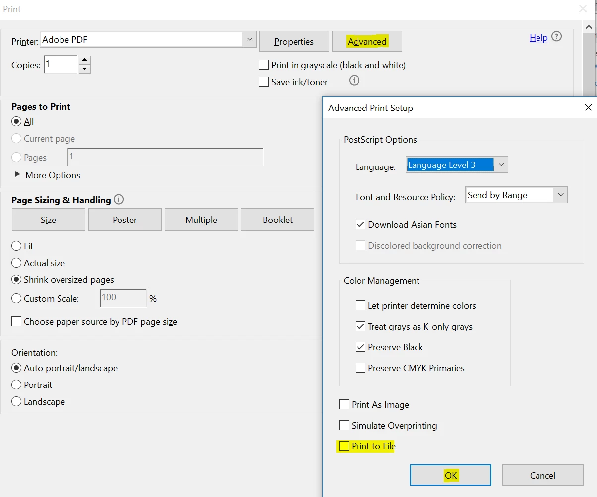 Sorry for the trouble, as per the description, when you try to print a PDF, it changes into PRN file format, Is that correct?