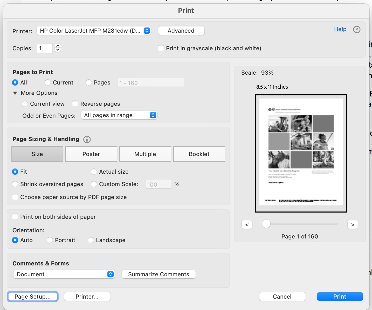 When I attmpt to print a PDF document it only prints first page, when all pages are selected. I tried to ust the print certain pages, and it only prints the first page listed. If i want to print the whole document, i have to select each page individually. t