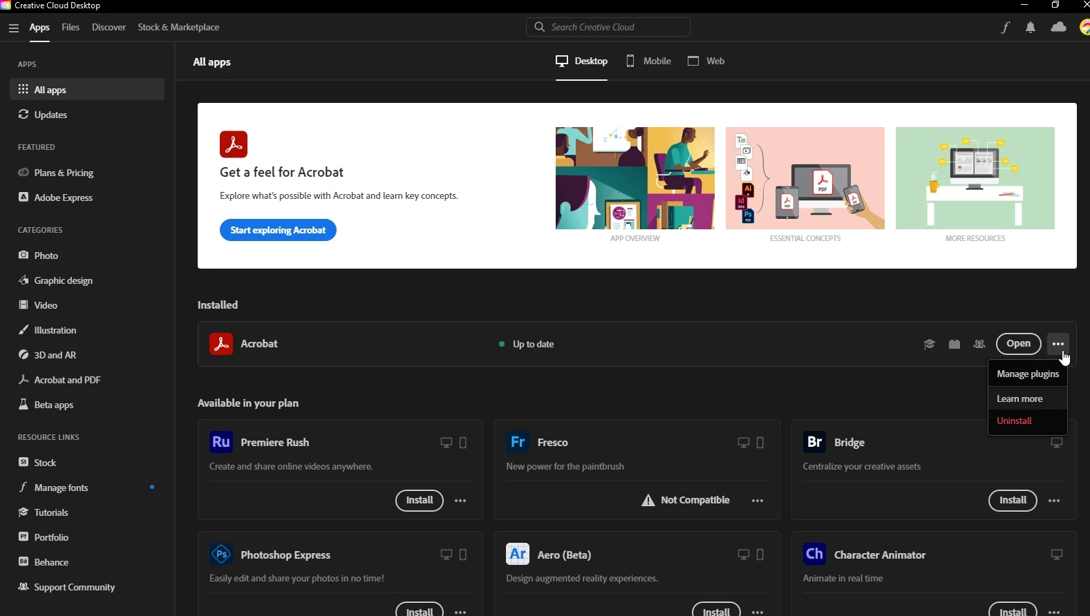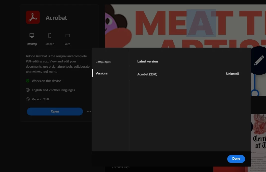 Downgrade Acrobat to previous version