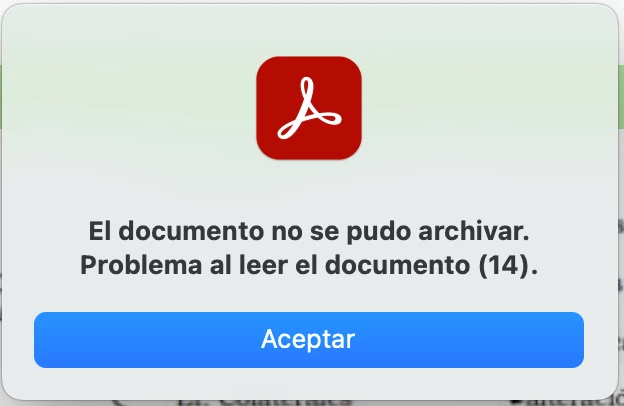 El documento no se pudo archivar. Problema al leer el documento (14).