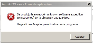 Hola! Desde hace unos dias siempre me sale este error al abrir el adobe reader, y al darle 3 o 4 veces, al final si consigo abrirlo.
