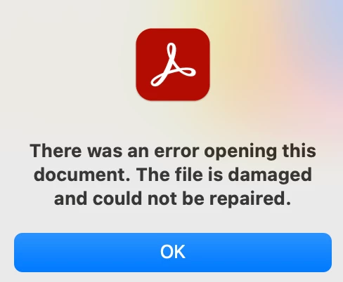 Error file was damaged and could not be repaired