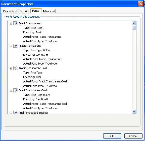 i got this message " cannot find or create the font 'Arabic transparent -bold'.some characters may not display or print correctly" just in windows 7 and vista even after i install the fonts arabic transparent- bold. but in windows xp every thing is good.