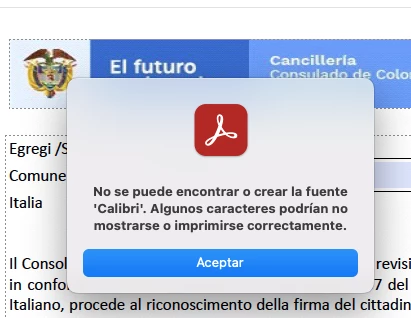 Después de las últimas actualizaciones todo funcionaba perfecto cuando debía llenar formularios, pero ahora me enviaron un documento para llenar, firmar e imprimir y me aparece que la fuente no se encuentra, el sistema elige la fuente pero cuando quiero escribir, me salen solo puntos, lo único que me deja agregar es mi firma.