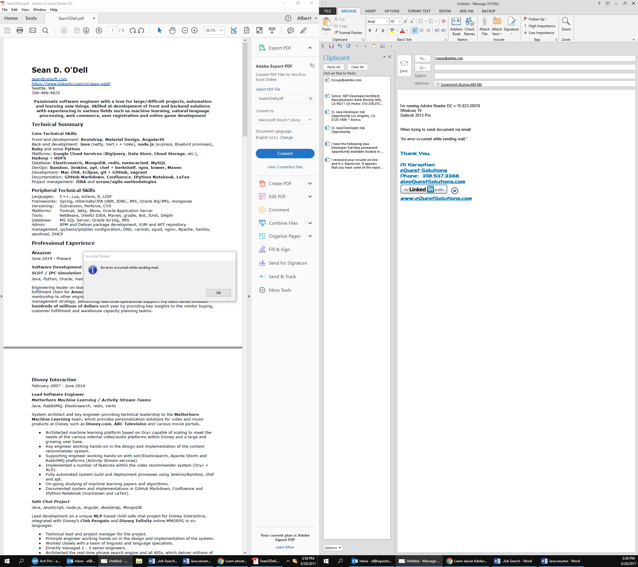 I have updated Adobe and Windows and Office. I have rebooted the computer several times. I have tried running Outlook as administrator. I have disabled all anti span/anti virus software..png)