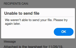 When I try to share a file for viewing in Acrobat Reader DC, it tries and tries to send but then I get this error: