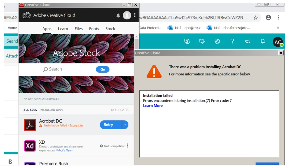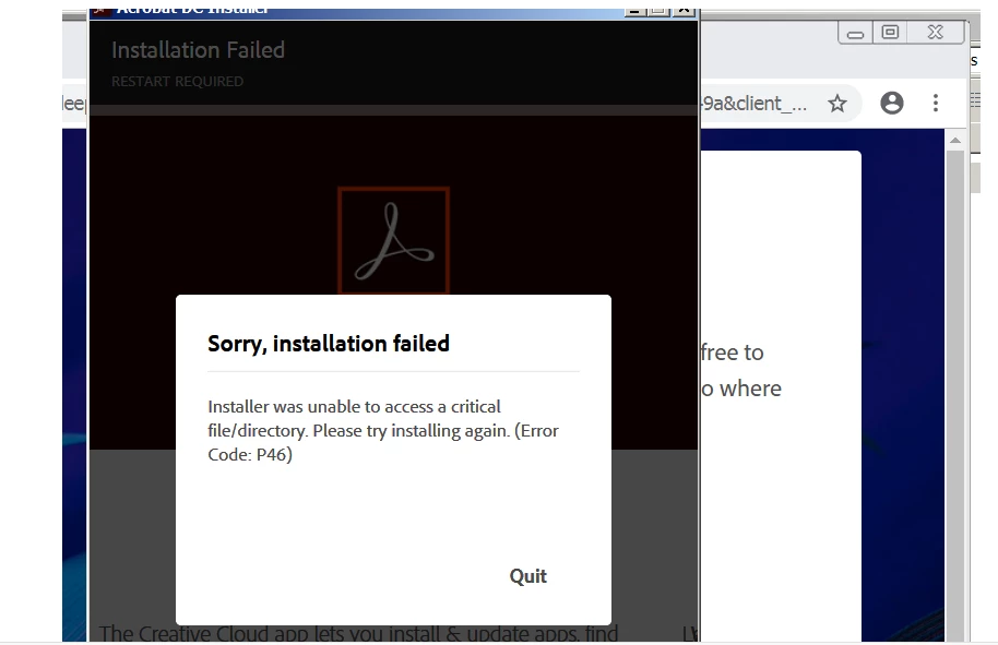 I'm trying to install Adobe Acrobat Pro on a PC but keep getting installation failure errors, of which two messages come up and which I've attached screenshoots.