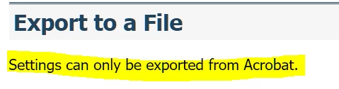 Wanted to export security settings (especially trusted CAs) to an .acrobatsecuritysettings file and use the "load security settings from server url" using this file to distribute the settings to our clients - but the "Export..." button preferences/security is always grayed out, no matter what I do (Import... is available).