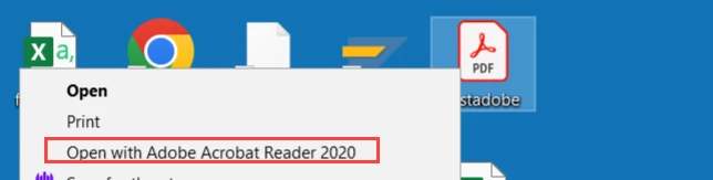 We can open the files from within Adobe Reader or right-click and choose Open with Adobe Acrobat Reader 2020.
