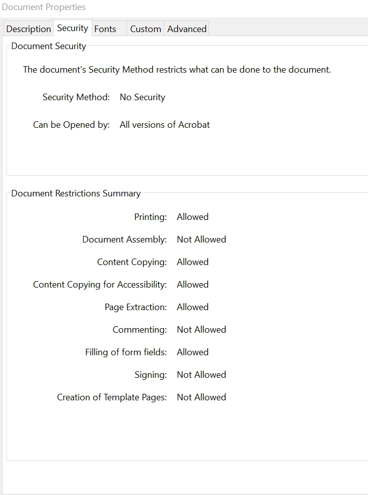 The form security is set to not allow signatures or comments. The users are filling the form using Adobe Acrobat Reader DC (64-bit) on their laptops and they are not attempting to sign the form.