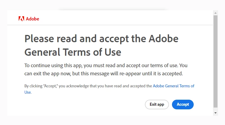 why are this term always appers and keep freezing after i click "accept"? so frustrated. it stuck there. please help me how to solve this
