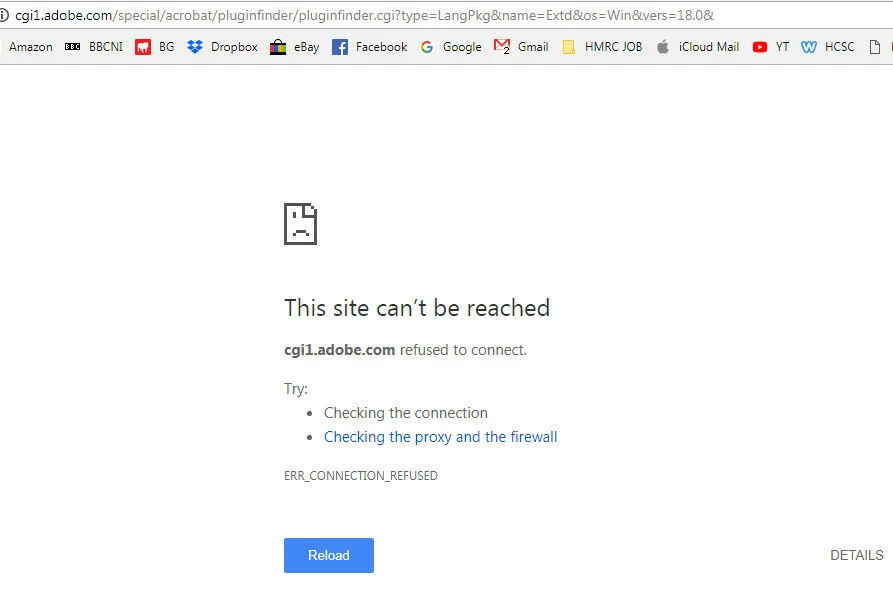 When I click OK it opens a web page ( Adobe) but I get this error message: