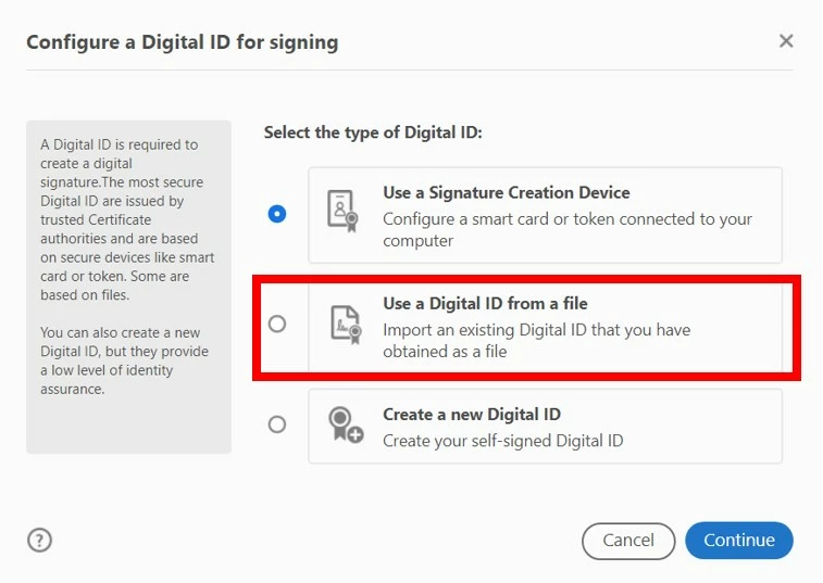 I searched very long for GPO or a registry key to disable the import of digital signatures. I mean the option USE A DIGITAL SIGN FROM A FILE under the tool/certificates/digitally sign/configure id. I found the registry key to forbid the option "Create a new digital ID", but until now it was impossible for me to find the right key to disable the other option.
