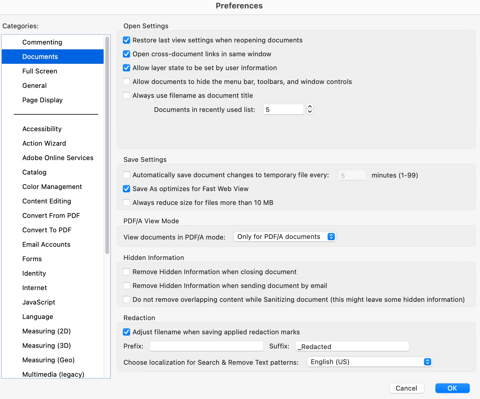 @barbora_1434 Yes, there is a way to configure Adobe Acrobat to open documents with only the main file view visible and to suppress the display of those auxiliary panels by default. Open Adobe Acrobat and navigate to Edit > Preferences (on Windows) or Acrobat > Preferences (on macOS). Within the Preferences dialog, look for a category related to Documents or Opening Documents. Within these settings, you should find options that control how documents are opened and displayed. Look for settings such as "Restore last view settings when reopening documents" and ensure it is unchecked. There might also be an option related to "Open to Page Panel" or similar; ensure this is set to None or that the specific panels you're seeing (like Attachments or the ISDOC form features panel) are not set to automatically open. By adjusting these preferences, you should be able to configure Acrobat to open files with a clean view of the document itself, without the automatic appearance of the panels you find unnecessary.