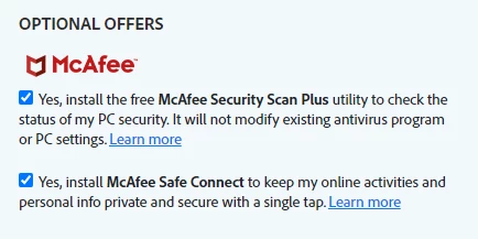 This link is installing McAfee without permission.