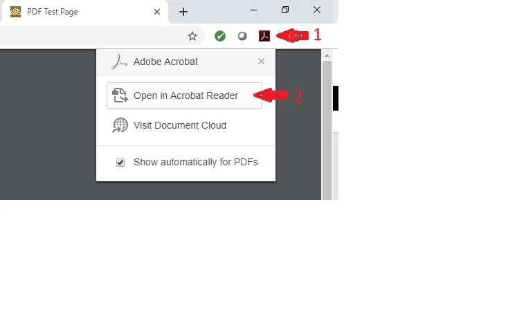 When I'm in Chrome and I'm viewing a PDF, I can click on the Adobe icon (Arrow 1) and then select "Open in Acrobat Reader" (Arrow 2). However, on some pages, the Chrome Address Bar isn't displayed because of the way the browser page is opened and I can't see the Adobe icon. When it happens, how can I open the PDF in Acrobat Reader? Is there a keyboard shortcut or any other way to open the docuement in Acrobat Reader when we can't wee the Adobe icon by the address bar?