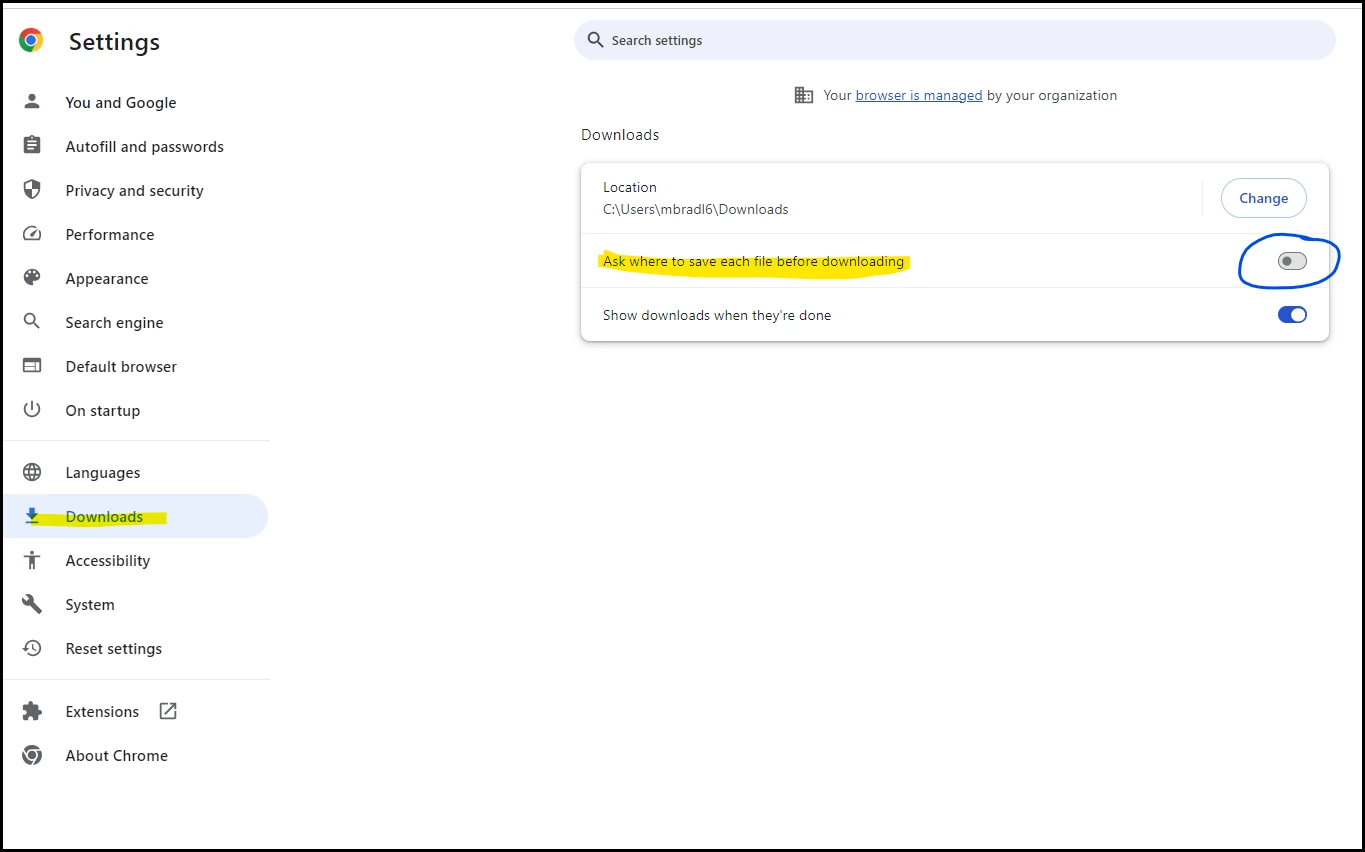 Also, I have tried going into the settings and turning off Download PDF files instead of automatically opening them in Chrome and it does not work still.