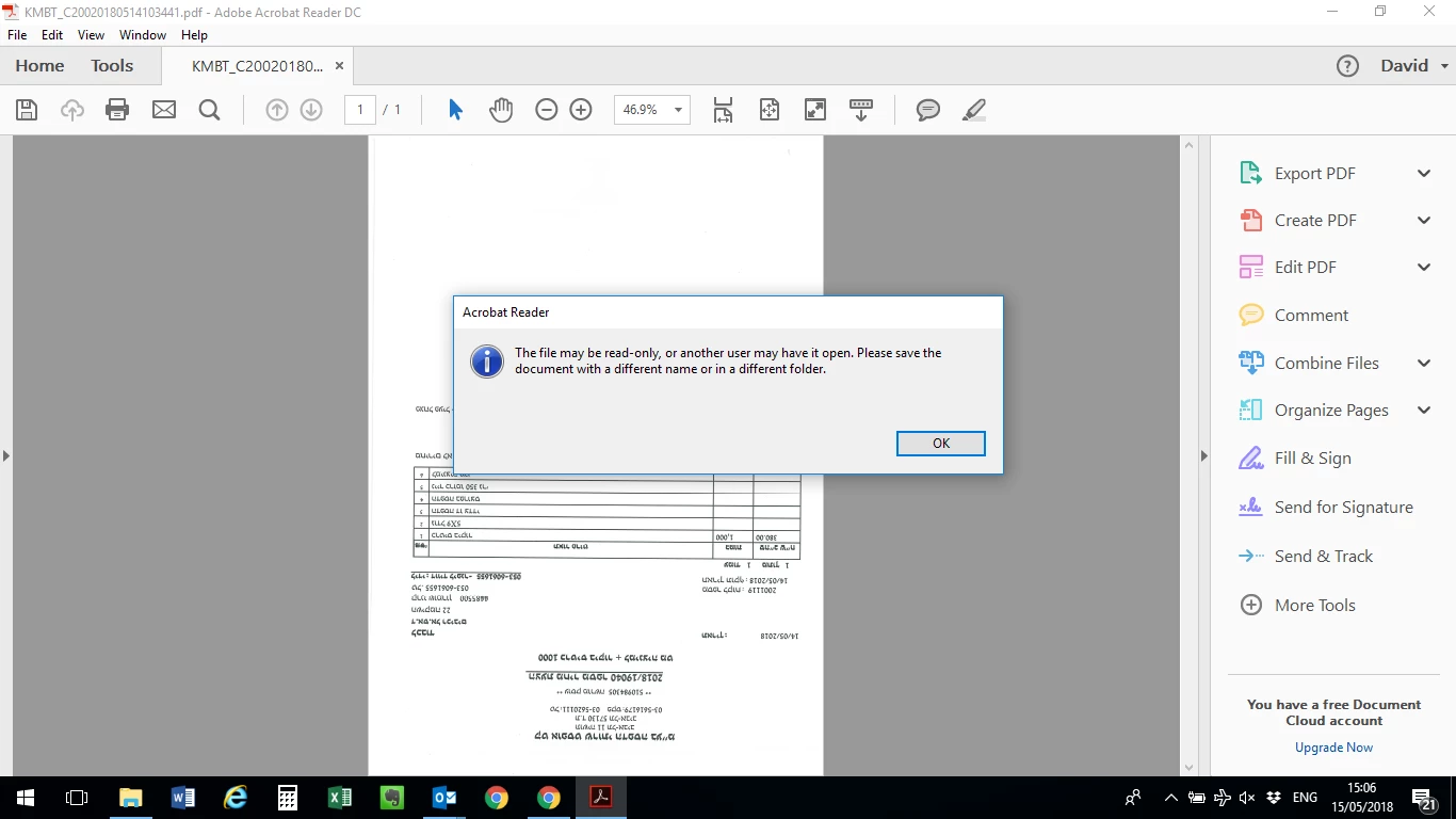 When I open a document to read and then save as by changing the name, I receive the following message box: