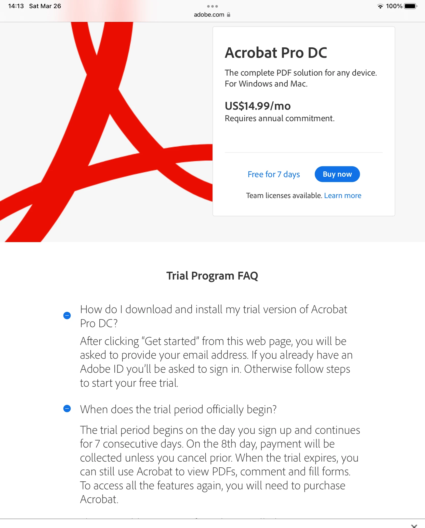 I want to use Adobe Acrobat DC free trial version. I found 7 day free tiral version of the same but on clicking Start Free Trial Button I am being asked the payment details.
