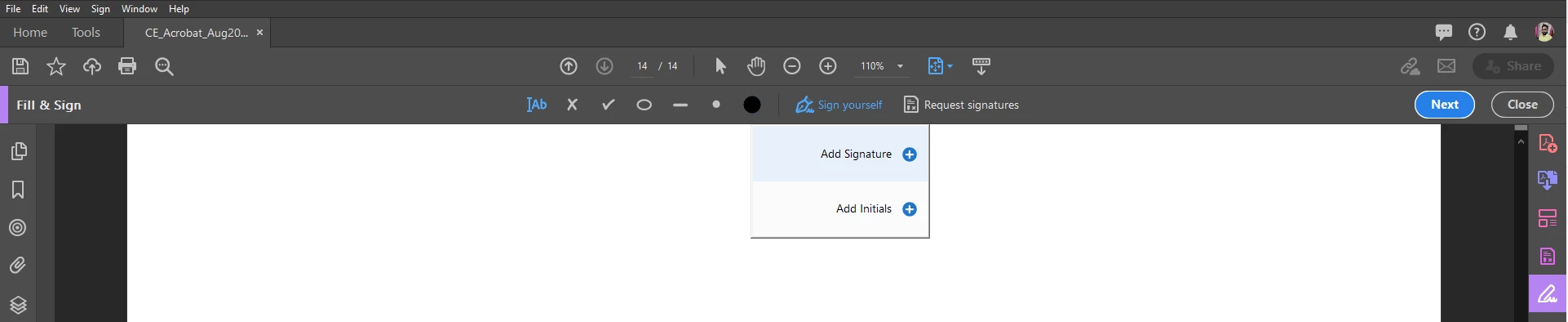If yes, then there are two options under the Sign menu of Fill & Sign Tool 1- Add Signature 2- Add Initials other than that, there isn't any option of adding an additional signature under Sign.