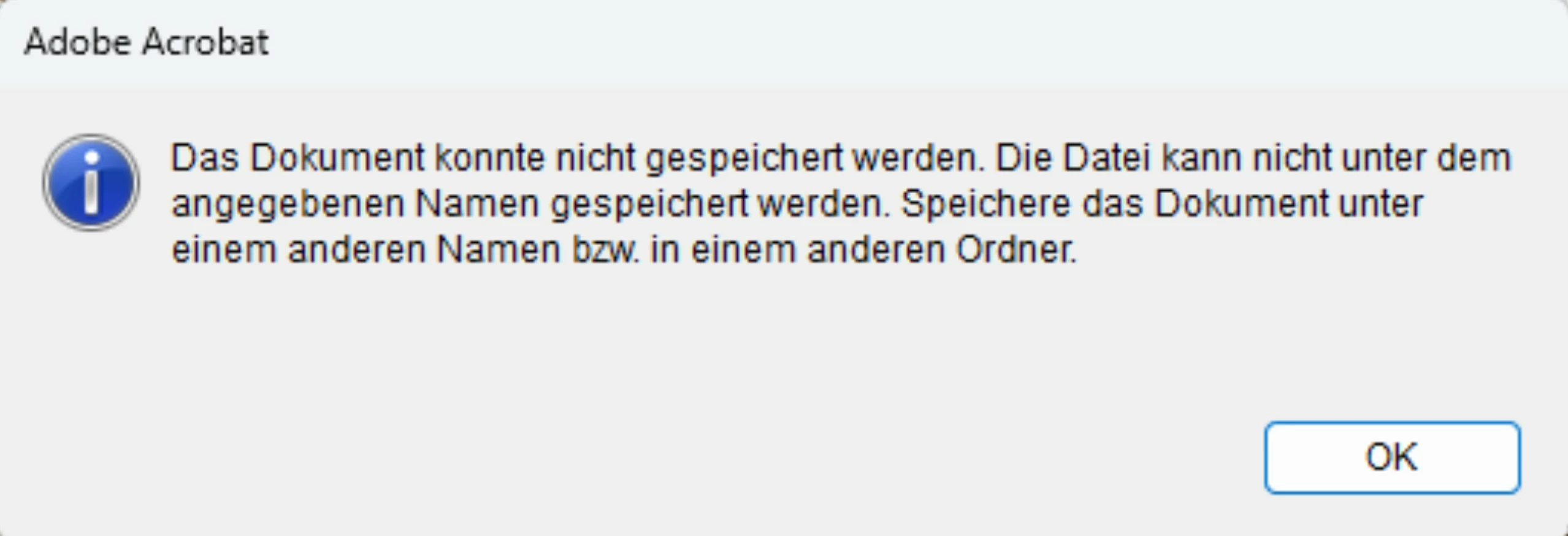 I got a message (attached on the screenshoot but in German) that the file could not be safed on this name and that i should give the file another name or another point to safe (both is not possible at the moment).