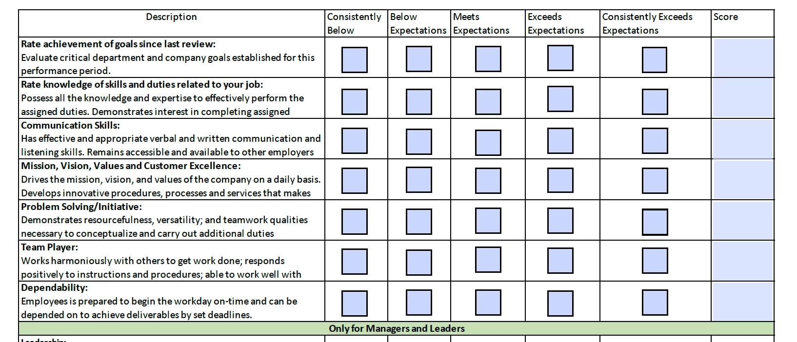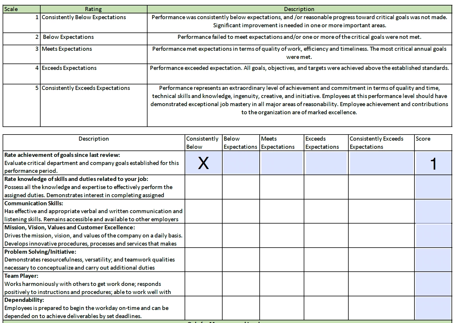 IF THEN Statement for Performance Evaluation Form