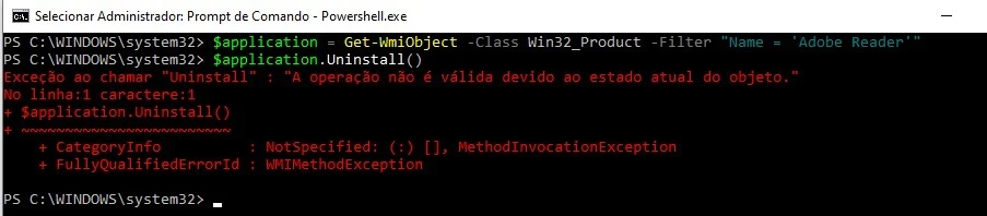 Tentando deslinstar pelo CMD: Ao Acessar: C:\WINDOWS\system32>Powershell.exe