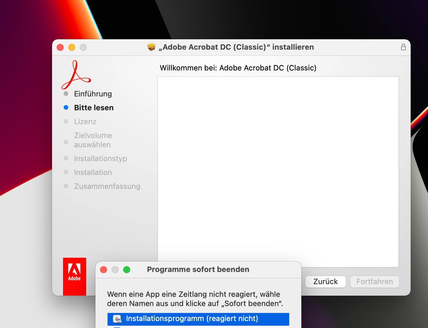 Installation issue Adobe Reader Pro 2015 on M1 MacBook