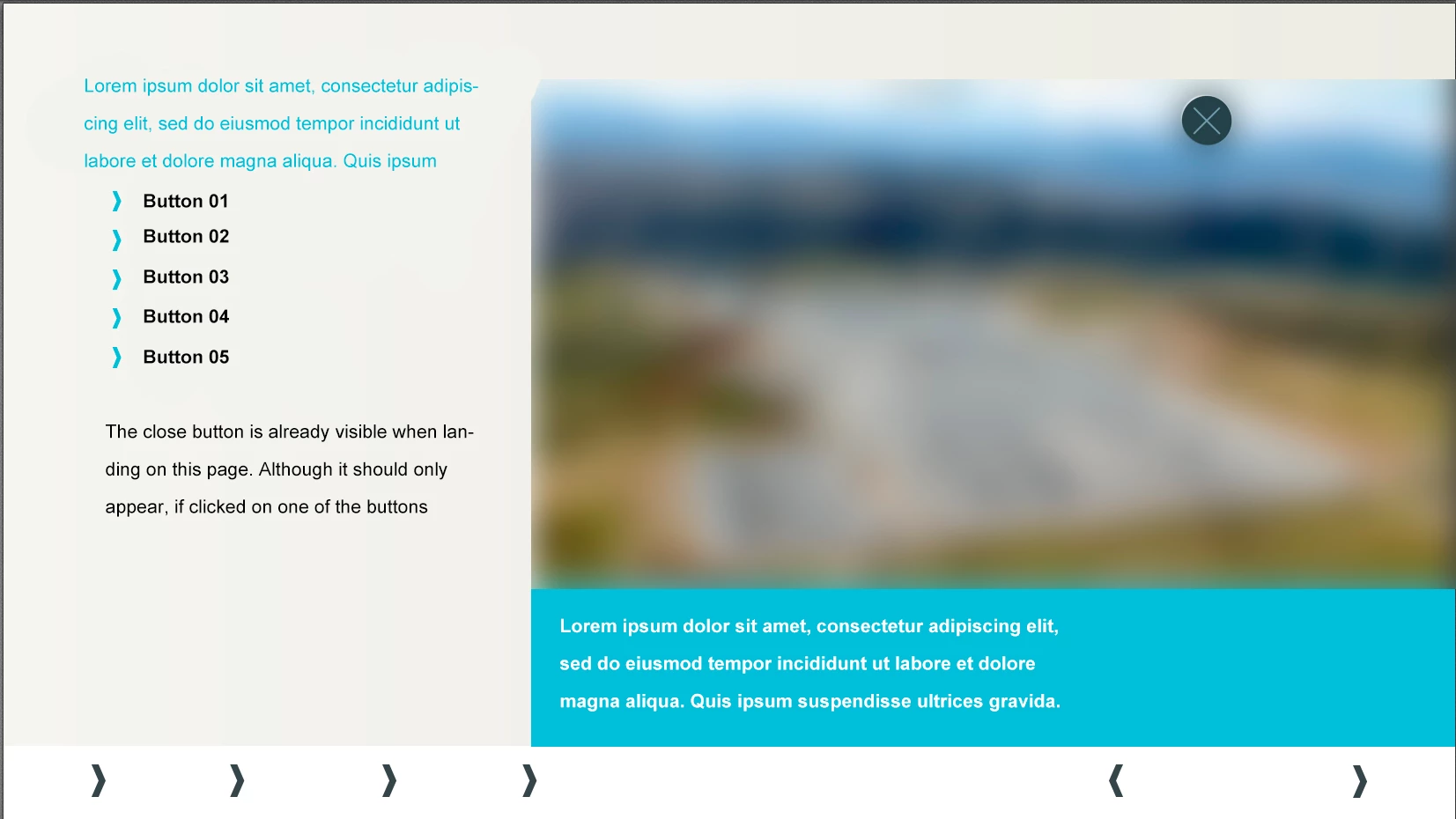 Page_01.jpg: This is how the page looks, when I land on it. As you can see, there is this grey button with a cross visible, although it shouldn't. What should happening on this page is: