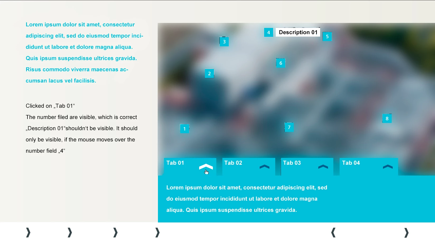 5. The right way would be, that the description box appears, if I move my mouse over the number field 4