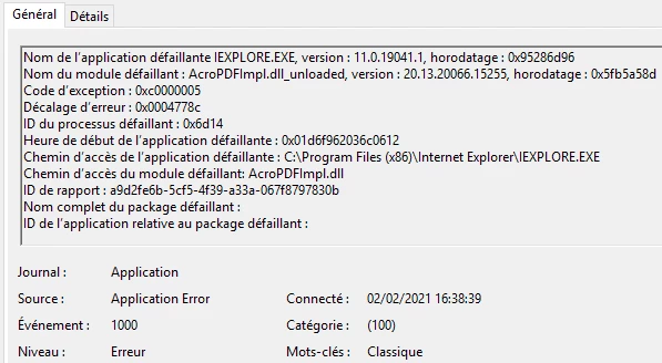 When we reopen the PDF file that crashed, it is systematicaly correctly displayed in IE.