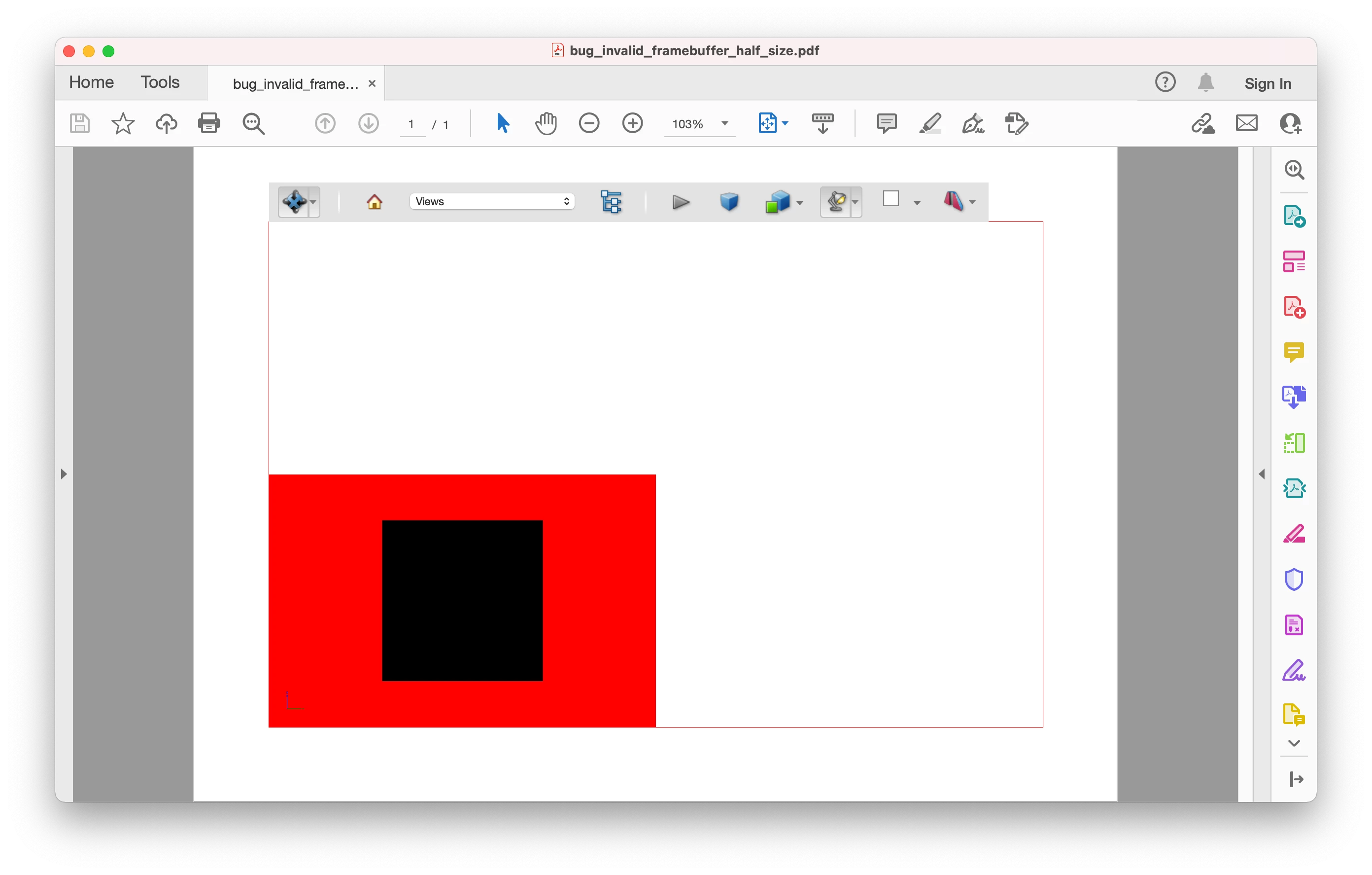 The same version of Adobe Reader DC on the same machine works fine on macos mojave 10.14.