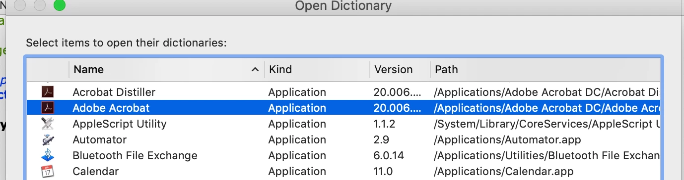 Is Adobe Acrobat Pro DC is scriptable using Apple script??. If i click on "open dictionary" in Script Editor i can see Dictionary for Adobe Acrobat but not for "Adobe Acrobat Reader DC". Even if i try to use those Apple Script commands for Adobe Acrobat Pro DC that doesnt work. Here my question is whether "Adobe Acrobat Reader DC" is scriptable.