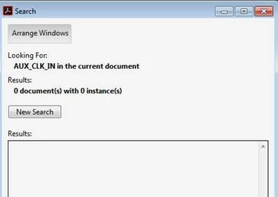 We have an issue with a pdf document published using one of our tools. In this particular document, search is not working properly. Below are the screenshots of the issue. To reproduce the problem, you can simply search for the string "AUX_CLK_IN" and see that the search results show only 1 output whereas the string is present twice in the page.